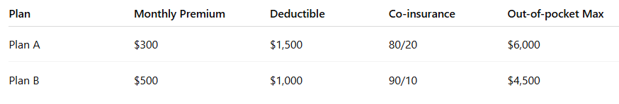 At first glance, Plan A seems cheaper due to the lower premium. But if you anticipate medical costs (say you’re managing a chronic illness or planning a surgery), Plan B could be the smarter choice.